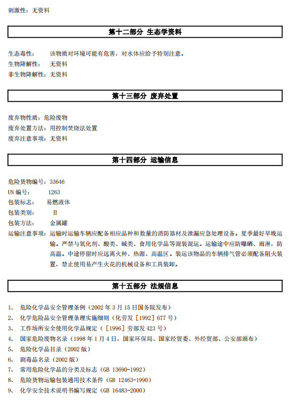 水平。在混合后要小心处理。使用手套。急救:如果不慎接触了眼睛,立即用清水冲洗至少 15 分钟,并脱去污染的衣鞋,用肥皂清洗接